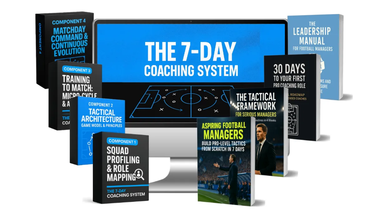 The 7-Day Coaching System is perfect for serious aspiring coaches who want to learn how to build a tactical identity their players understand, execute, and respect, even without pro licenses or full-time staff.